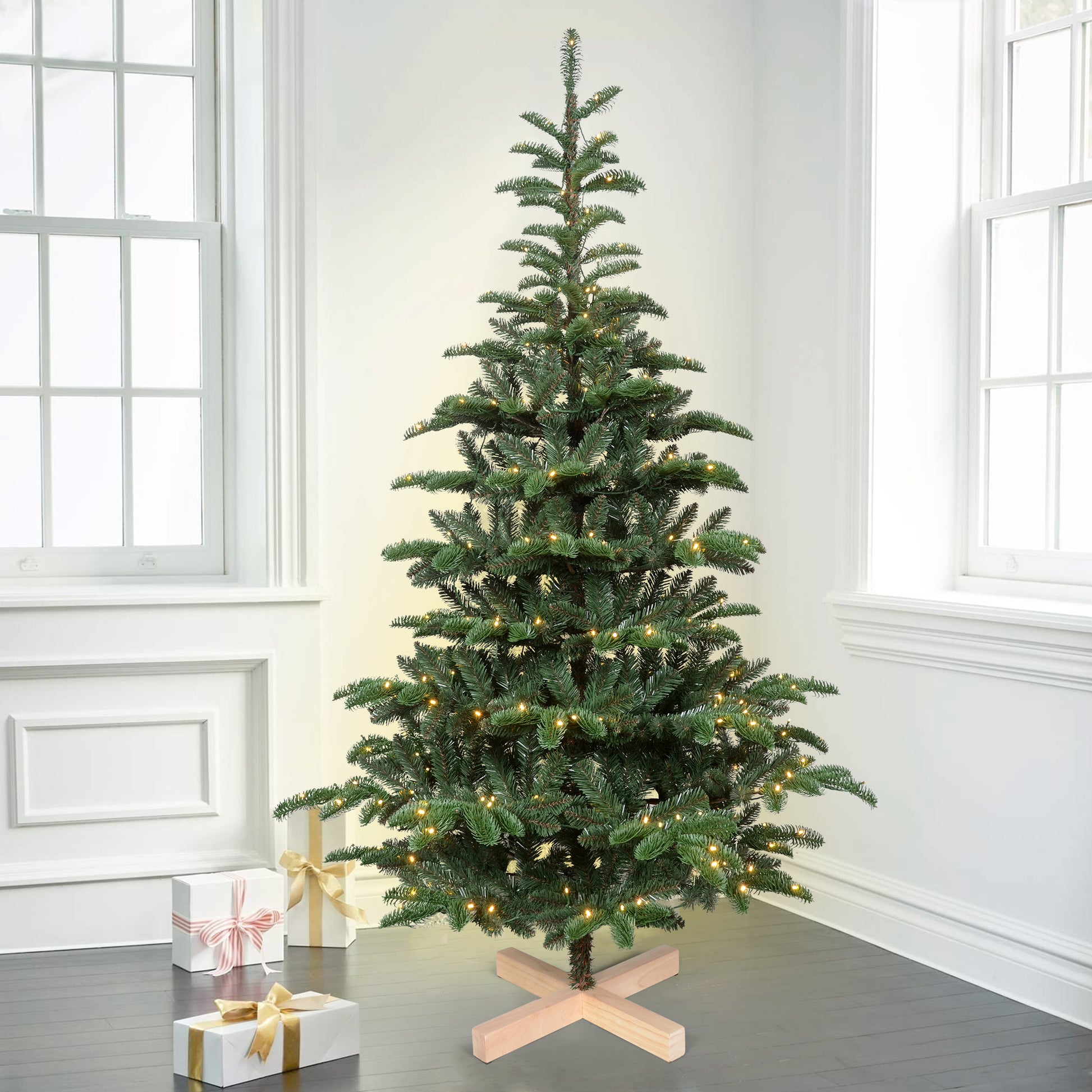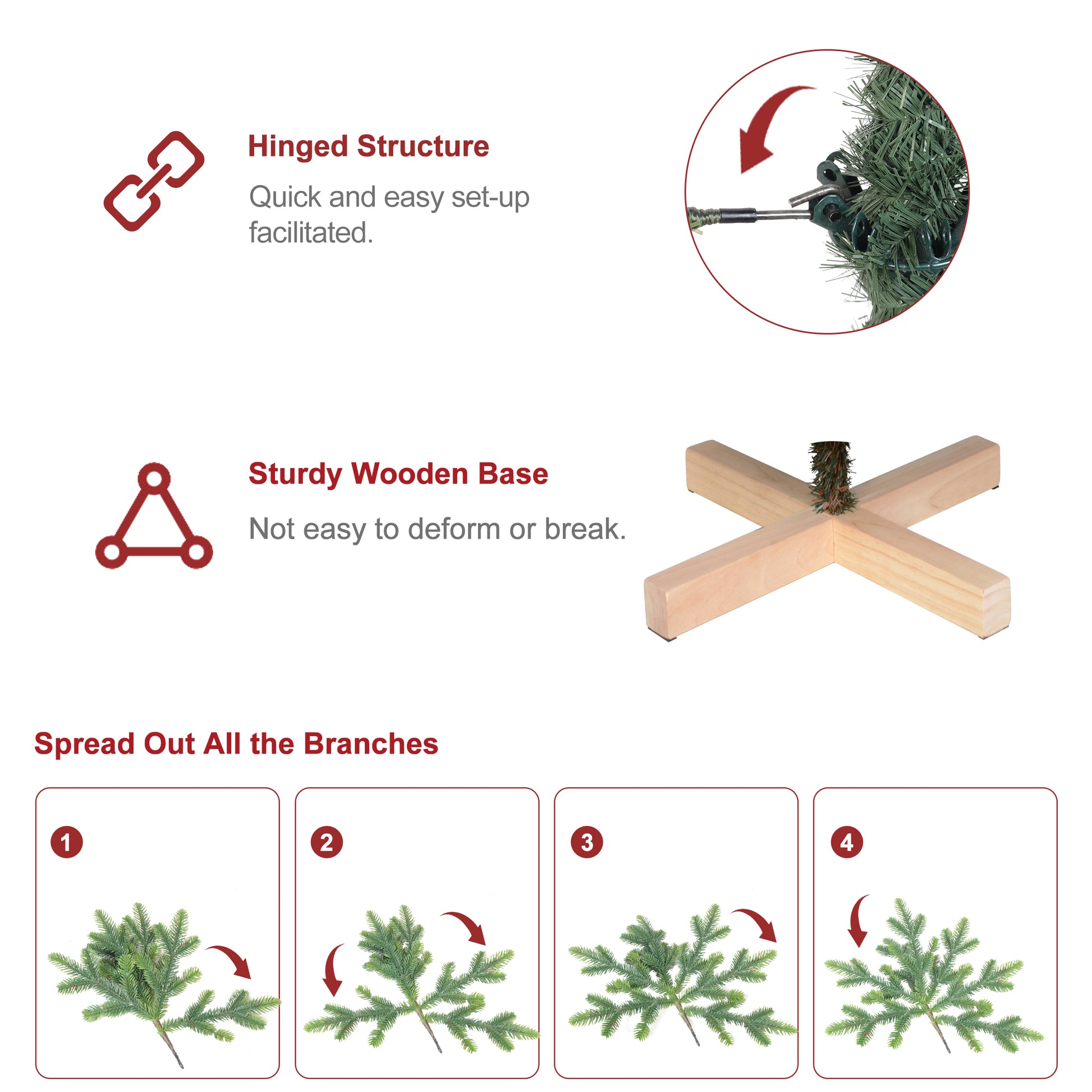 Bringstar 5ft/6ft/7ft/8ft Pre-Lit Christmas Tree, Wooden Base Tree with 611 PE & PVC Branch Tips, 300 Lights