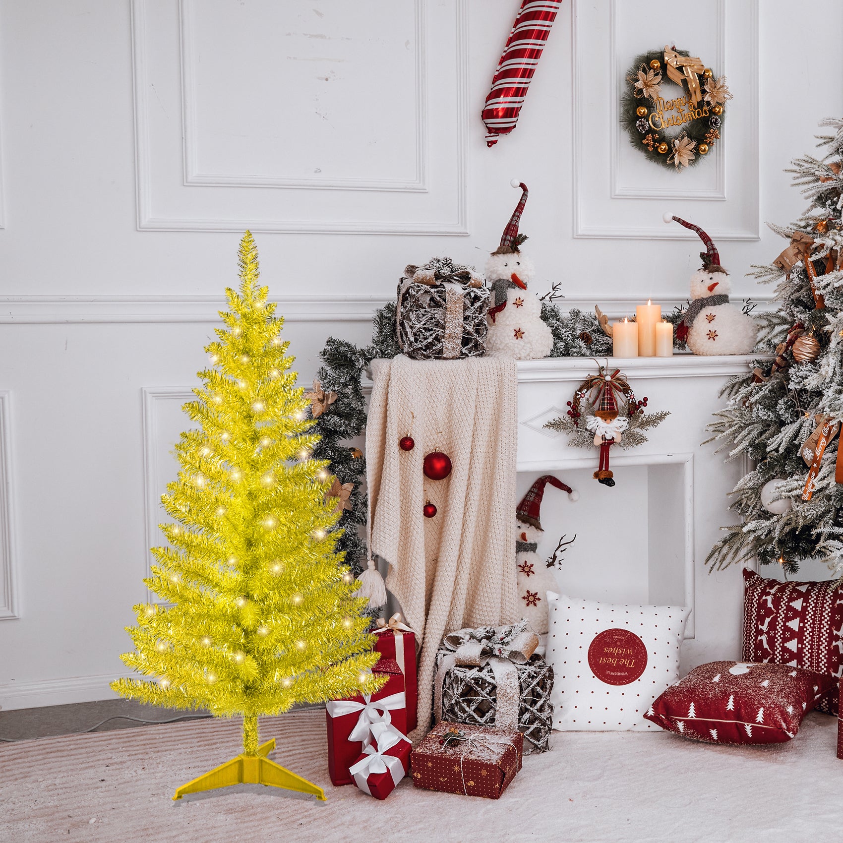 4ft Christmas tree is made of 115 premium PVC branch tips, flame-retardant, not easily deformed and looks full and realistic. Small Christmas tree is 25" in diameter and has a mini design, making it perfect for desks, counters, tables, smaller spaces and apartments. Gold appearance breaks the traditional Christmas trees' style of colors to create a festive centerpiece. 50 UL-listed warm white lights illuminate your home with a festive glow, string lights need to be DIY decorated and wrapped around the tree, so we recommend bringing the family in on the fun. Crafted with exquisite craftsmanship, gold Christmas tree is designed to withstand long-term use without falling off easily. Allocating 20 minutes to properly fluff the branch tips will ensure a full and naturally-shaped Xmas tree. Hang ornaments, ribbons and any other decorations of your choice onto the branches. Besides, Thickened base can provide greater support to improve the overall stability of artificial Christmas tree, ensuring you can enjoy it for many holiday seasons to come!